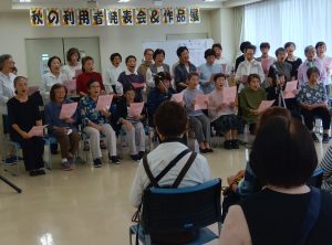 常盤台ケアプラザ・常盤台コミュニティハウスを利用しているサークルの皆さんや自主事業で日頃の活動の成果を発表する「利用者発表会」が10月5日(日)に開催されました。コーラスもダンスも空手もその他思い切り楽しんで発表されていました。また、園芸ボランティアの方々も日ごろの成果の苗の販売も行われました。また来年、一年間の成果の発表が楽しみです。