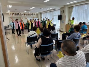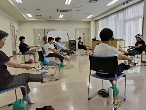 9月15日(月)「チェアリズム体操」が開催されました。いつものように、手指から順に手足、股関節まわり、肩甲骨など体幹のほぐしやバランス運動を行いました。またリズム体操で脳トレも入れながらのトレーニングでした。