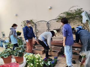 11月18日(月) 今月はこれからの季節の花の苗が入荷したので園芸ボランティアの方々に花壇に植えていただきました。また、「ワイワイまつり」に出店する商品などの用意もしました。