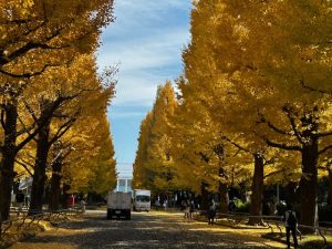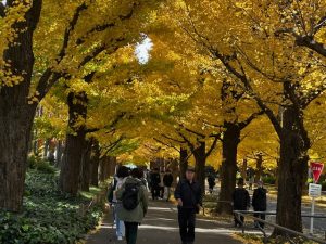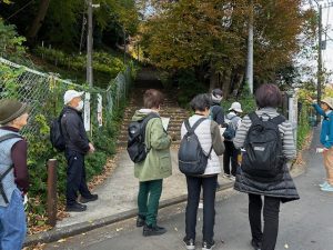 11月27日(木) 今月の「保土ヶ谷周辺ウォーキング」は「昔を訪ねて日吉の裏道巡り」として、東急東横線日吉駅から慶応普通部、日吉の丘公園を通って慶応義塾大学の周りをまわるコースでした。日吉の丘公園には今はふさがれていますが、横穴古墳群跡がありました。日吉駅から慶応義塾大学に向かって黄色く染まったイチョウ並木が見事でした。