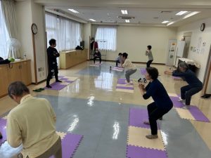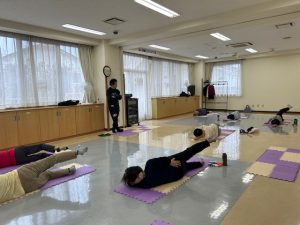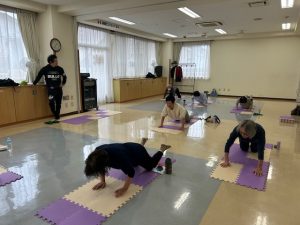 11月06日(木) 体幹トレーニングが行われました。今回はコミハの行事と重なるため日程を変更しての開催のためいつもより少ない参加者となりました。いつものように腹筋周りの腹横筋・腹斜筋や股関節周り、ゴムチューブを使って肩甲骨周りを鍛えました。