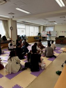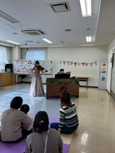 12月18日(木) 未就園児親子を対象とした『バームクーヘン「クリスマスコンサート」』が開かれました。今年のクリスマスコンサートはピアノとバイオリンによる演奏会でした。素敵な音楽を聴いた後、サンタさんにプレゼントをもらいました。