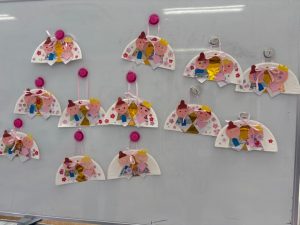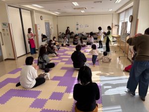 2月12日(木) バームクーヘン「ひなまつり」が行われま「おひなさまを」作りました。その後絵本の読み聞かせやお母さんと一緒に体操で体を動かして楽しく遊びました。